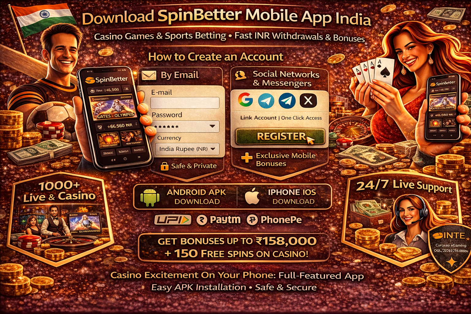 Immediately after the SpinBetter APP download is complete , a login window will open offering several registration options. We've developed two convenient methods to ensure every Indian user can choose the most suitable route.